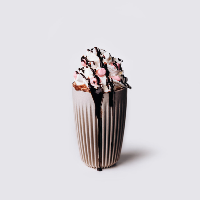 Chocolat chaud, guimauves, chantilly, sauce chocolat, gaufrette Coconut